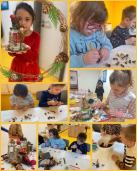 Der Donnerstag wurde wieder kreativ. Die Kinder konnten sich aus Gläsern und Naturmaterialien kleine Waldwichtel-Häuser bauen. Jedes Kind durfte sein Glas individuell gestalten und so wurde jedes Wichtelhaus einzigartig.