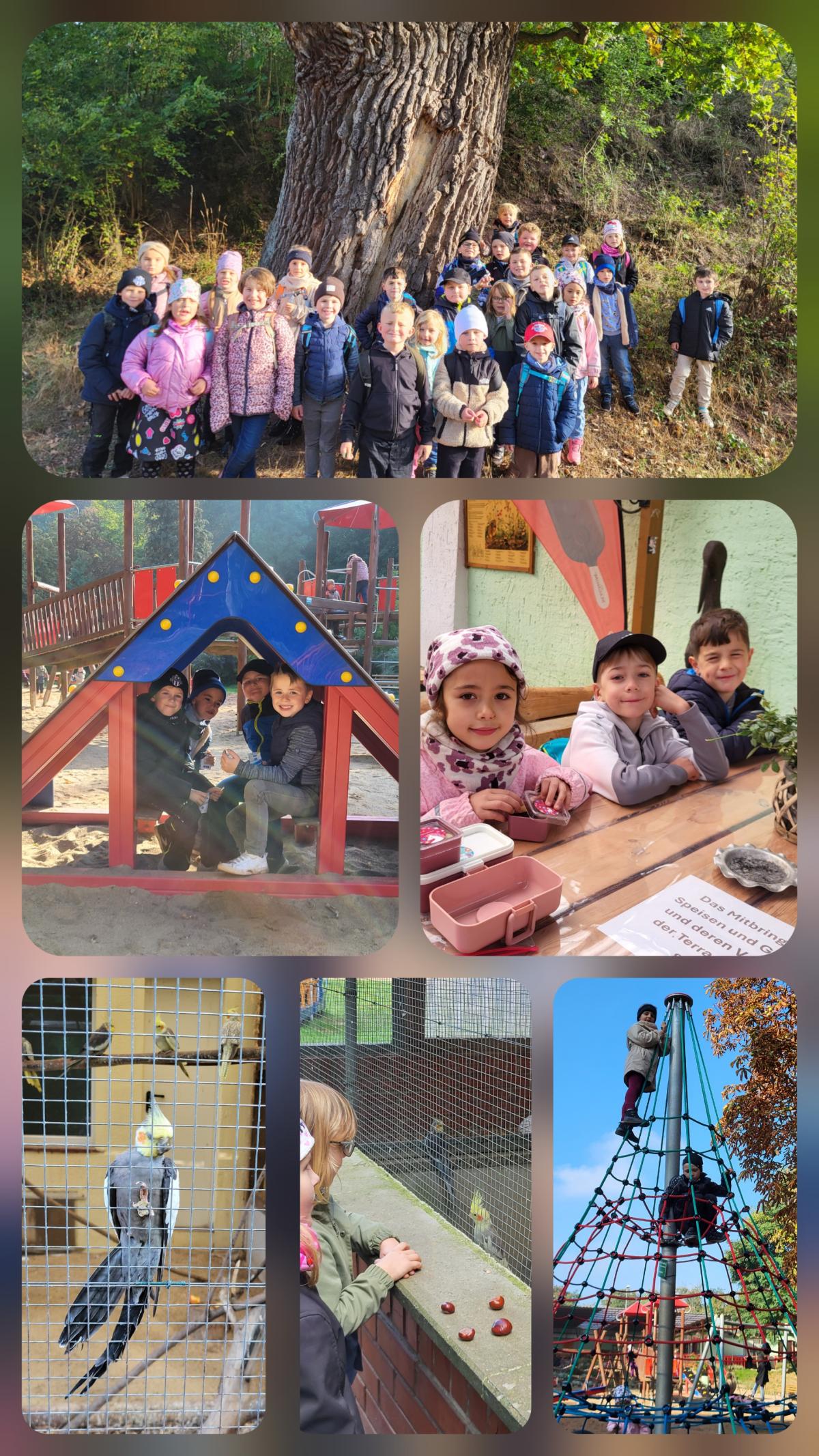 Am Donnerstag, 02.10.2025 machten sich die beiden ersten Klassen der Evangelischen Grundschule Hettstedt auf dem Weg zum Tierpark nach Walbeck. Unterwegs zeigte sich der Herbst von seiner schönen Seite, denn wir konnten viele bunte Blätter, Früchte und kleine Tiere entdecken. In Walbeck angekommen, schauten wir uns die verschiedenen Tiere an und spielten ausgiebig auf dem Spielplatz. Für alle Kinder war es ein erlebnisreicher Tag und wir bedanken uns bei den Mitarbeitern des Tierparks und Kiosks.